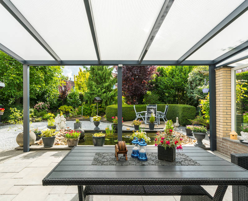 Our verandas can be installed with either a frosted or clear polycarbonate roof.