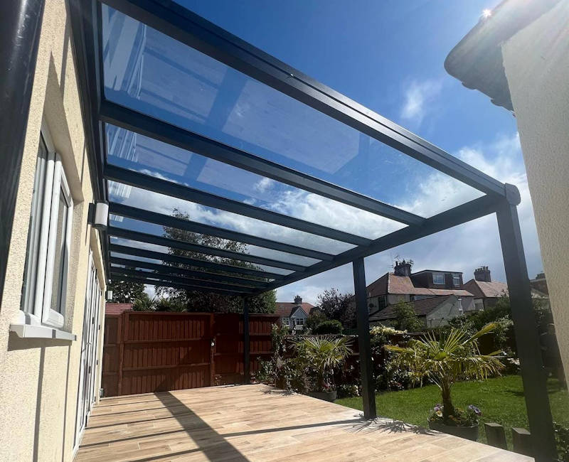 A poycarbonate roof is the more affordable option when compared to a glass roof.