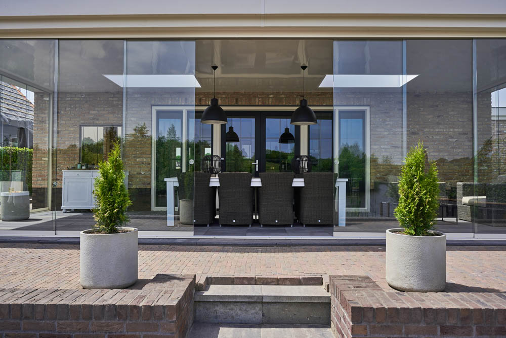 Perfect for gardens and patios, and often used as garden rooms, glass verandas provide a wonderful space to relax, dine or entertain in. When closed, the glass doors can protect you from the cold, windy and damp weather whilst still allowing natural light to enter the space and offering unobstructed views of the garden.